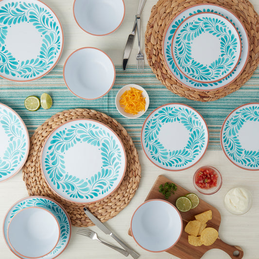 Decorate your dinner table with subtle ceramic style. Our dinnerware sets are perfect for plating and enjoying your favorite Latin recipes with glossy finishes in beautiful white, aqua, and orange colors. All our dinnerware is also conveniently dishwasher safe, microwaveable, and durably crafted for regular use.